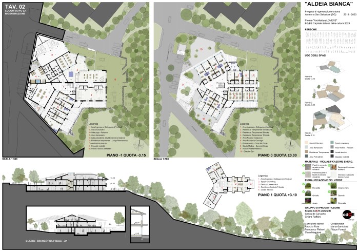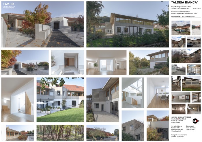 Breve descrizione: Il progetto “Aldeia Bianca” propone un modello di rigenerazione urbana innovativo, attraverso il recupero senza demolizione di un fabbricato artigianale di recente costruzione, ospitando al suo interno nuove destinazioni d’uso, aree per l’educazione, aree destinate alla cura del corpo, alla cura della mente, aree di coworking, aree per le nuove forme dell’abitare contemporaneo e abbattendo molti recinti esistenti per offrire nuovi spazi urbani aperti alla cittadinanza.